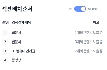 - 아무리 검색량이 많아도 웹문서 섹션이 아래로 밀리면 클릭 유입이 저조