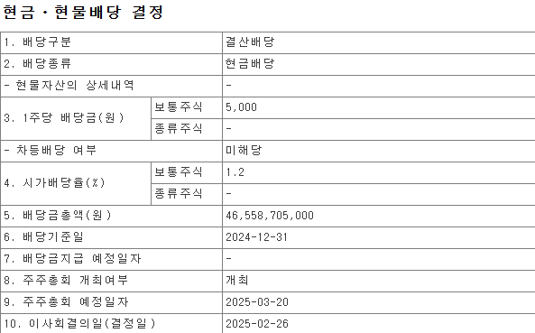 - 배당 기준일: 2024년 12월 31일