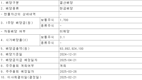 - 배당 지급일: 2025년 4월 21일 (예정)